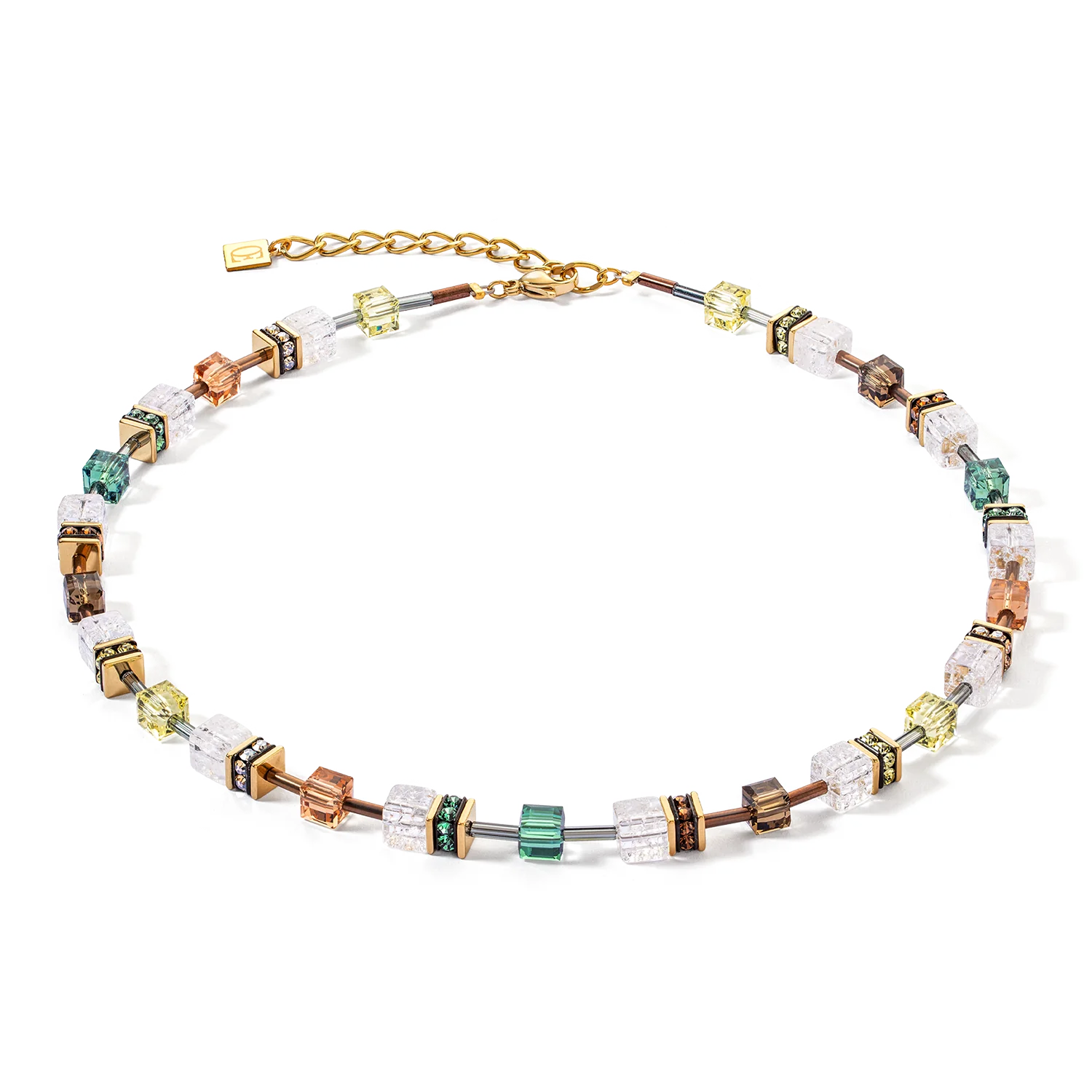 GeoCUBE® Iconic Nature necklace brown and white in gold: naturalness meets glamour Discover the perfect balance between nature and elegance with the GeoCUBE® Iconic Nature necklace in brown and white and gold. This extraordinary necklace combines the soft, earthy tones of crystals with the fascinating, cracked rock crystal cubes that give the piece of jewellery a unique, natural texture. Inspired by the current colour trend of grounded glamour, this necklace combines warm earthy tones with the luxurious shine of gold. It is not just a piece of jewellery, but an expression of style awareness and a connection with nature. Whether for everyday wear or special occasions, this necklace adds a subtle yet impressive touch to any outfit. Experience the magic of nature combined with glamorous design - with the GeoCUBE® Iconic Nature necklace brown and white in gold. A must-have for anyone who wants to combine elegance and earthiness in a stylish way. Every piece of jewellery ordered from COEUR DE LION will be delivered to you in a premium designer case and with a certificate of authenticity.
