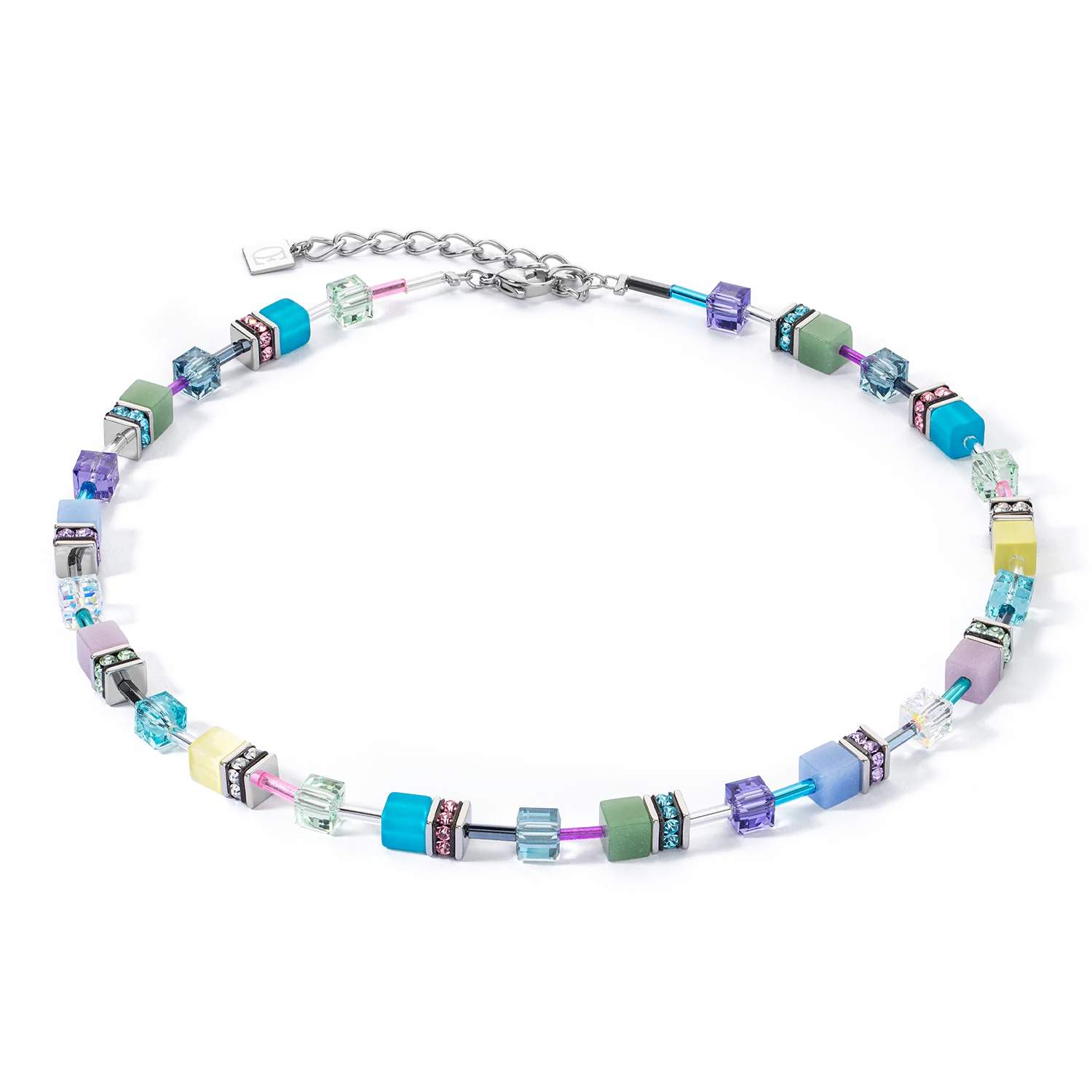 GeoCUBE® Iconic Necklace Silver-Ice Pastels: A touch of winter magic Discover the magic of winter with the GeoCUBE® Iconic Necklace in Silver-Ice Pastels. Inspired by the delicate, frosty patterns of ice flowers, this necklace brings the delicate beauty of an icy morning to your jewellery collection. The cubes in soft pastel shades reflect the radiant light of winter and add an elegant, refreshing touch to your outfit. Combined with precious silver, the result is a harmonious design that perfectly combines timeless elegance and modern sophistication. This necklace is a must-have for anyone who wants to make a statement while expressing their love of understated, stylish accessories. With the GeoCUBE® Iconic necklace in silver ice pastels, you can carry a piece of winter magic with you - whatever the occasion.