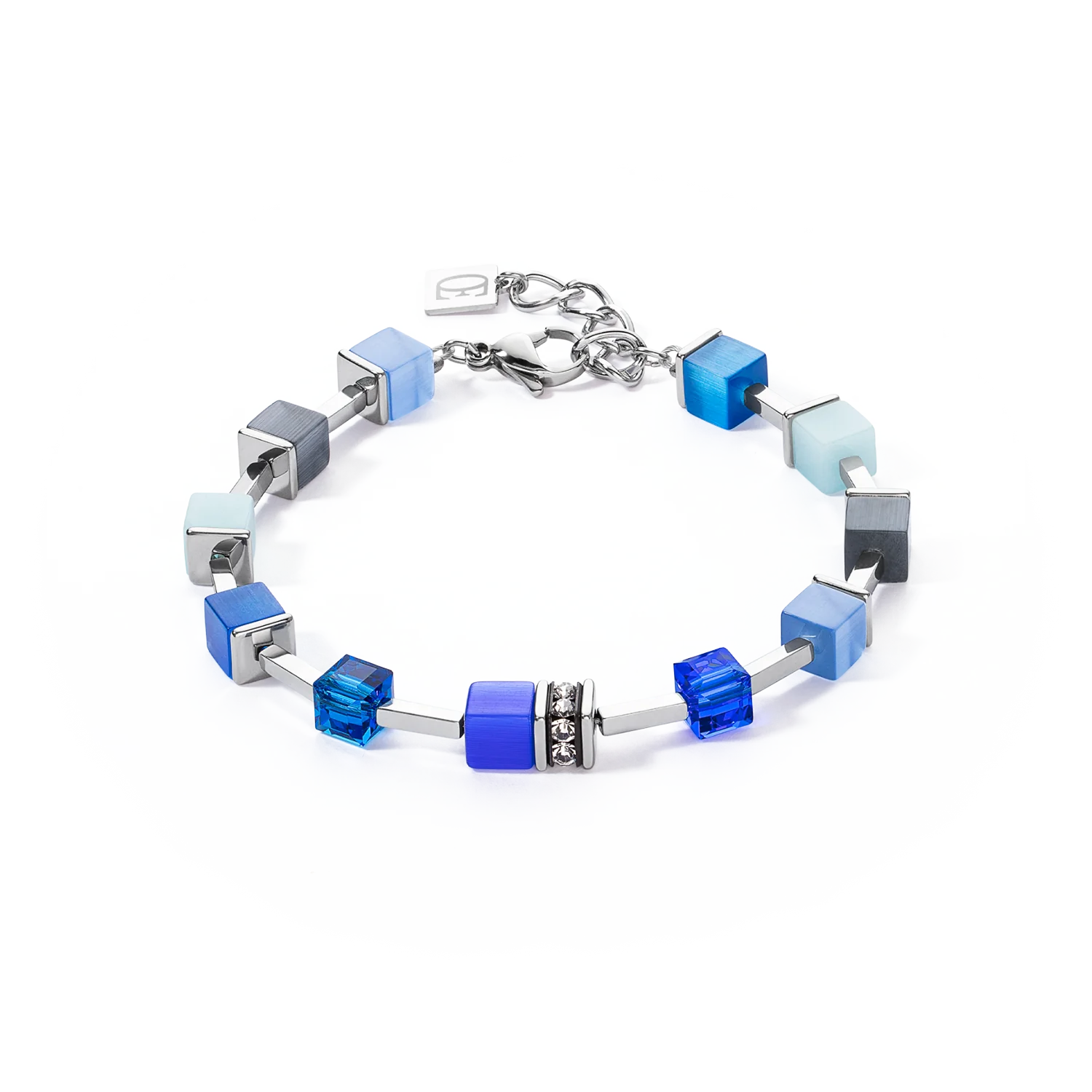 The timeless beauty of the GeoCUBE® Iconic Pure bracelet in blue-silver is reflected in the masterful combination of the classic GeoCUBE® Iconic sequence with a modern, purist sequence.
