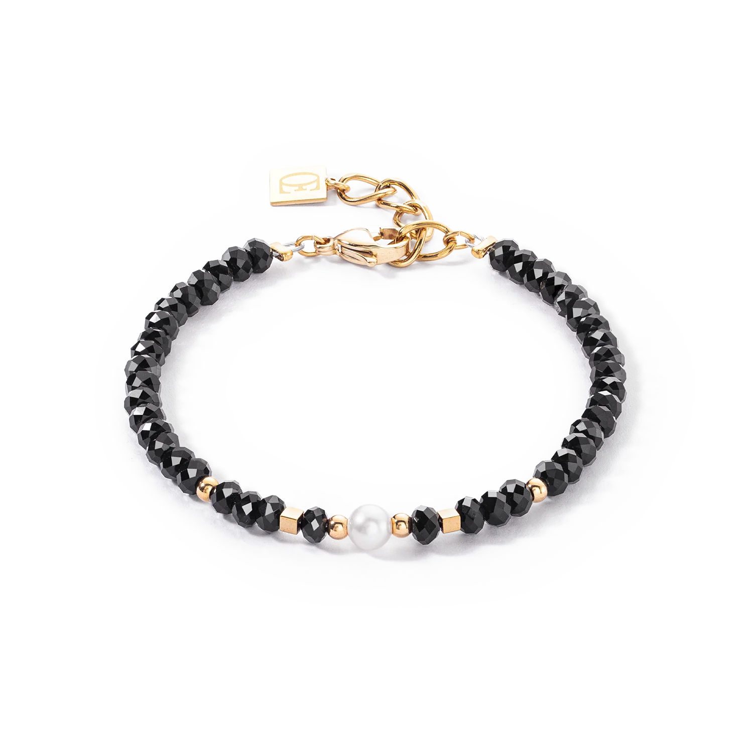 Mystic Pearl bracelet - timeless Art Deco elegance The Mystic Pearl bracelet combines classic style with modern accents. A delicate freshwater pearl in the centre, surrounded by golden elements and sparkling black crystal beads, lends this piece of jewellery an aura of sophistication. Perfect for special occasions or as a stylish highlight in everyday life - a real statement in Art Deco design. Every piece of jewellery ordered from COEUR DE LION will be delivered to you in a premium designer case and with a certificate of authenticity.
