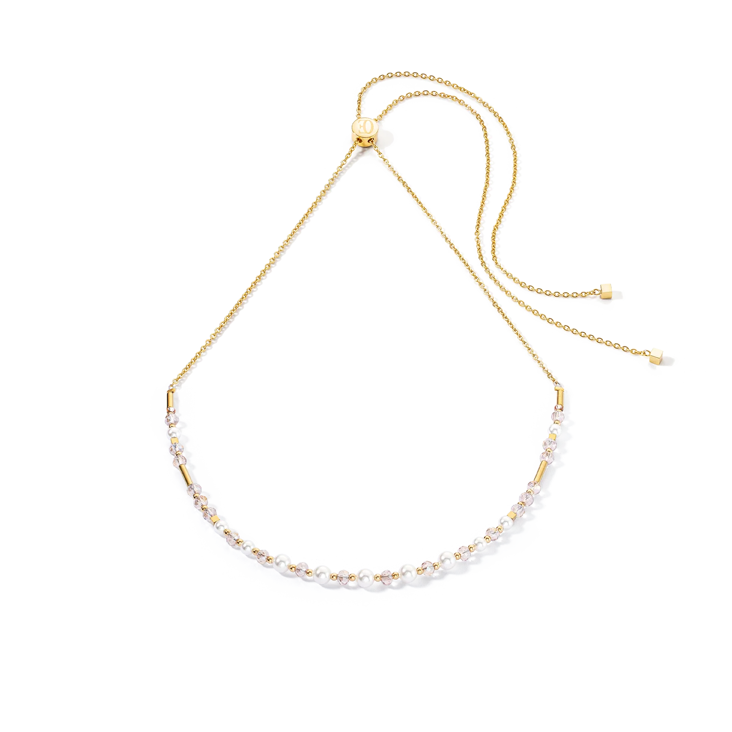 Princess Pearls Chain necklace gold and white: versatile elegance with a touch of luxury The Princess Pearls Chain necklace in gold and white is the perfect choice for anyone looking for a delicate yet luxurious accessory. This delicate piece of jewellery made from crystal pearls and shimmering crystals can be worn on its own or layered. Thanks to the practical slider clasp, you can customise the length of the necklace - whether worn close to the neck for an elegant look or loose for a relaxed, modern look. This necklace offers you maximum flexibility and adds a subtle, sophisticated touch to any outfit.