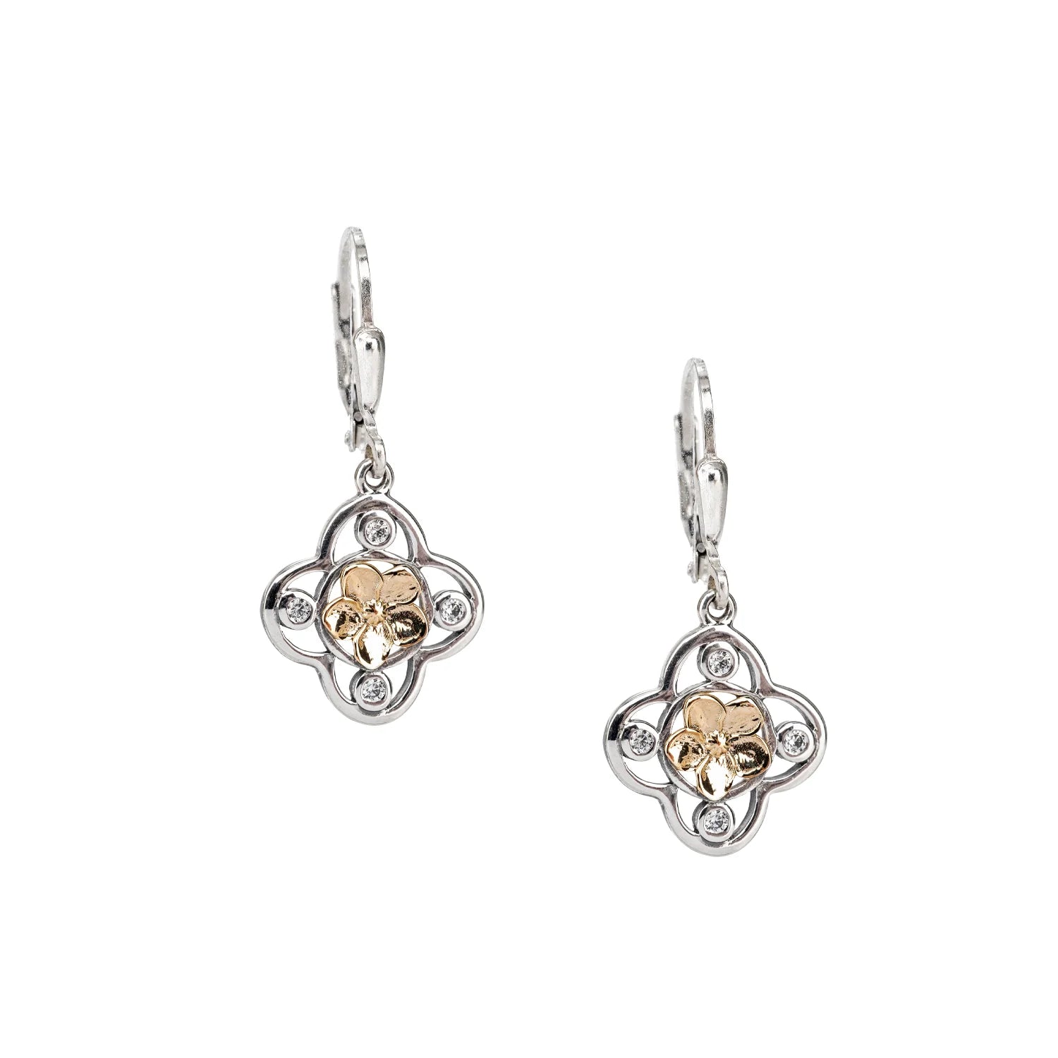 Silver And 10k Gold Forget-Me-Not Leverback Drop Earrings - Cubic Zirconia